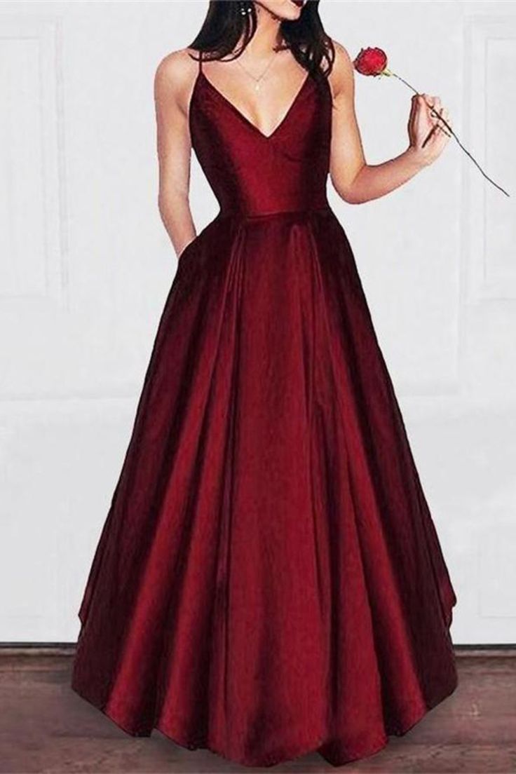 SSR318,charming red sleeveless v-neck pockets satin evening dress