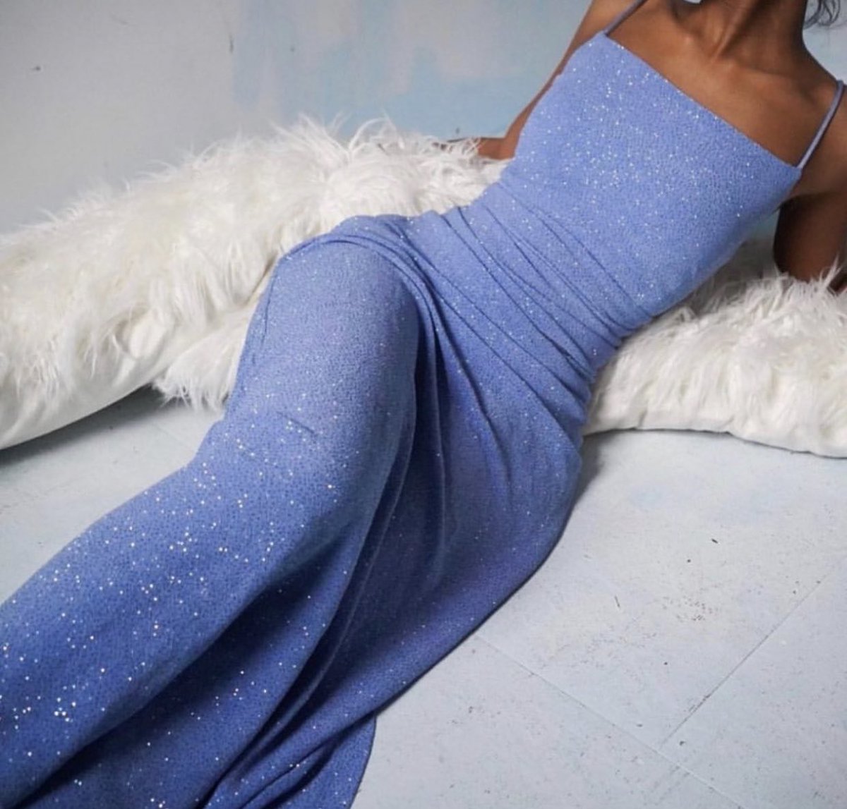 SSR387,blue sleeveless a-line spaghetti-straps sequins evening dress
