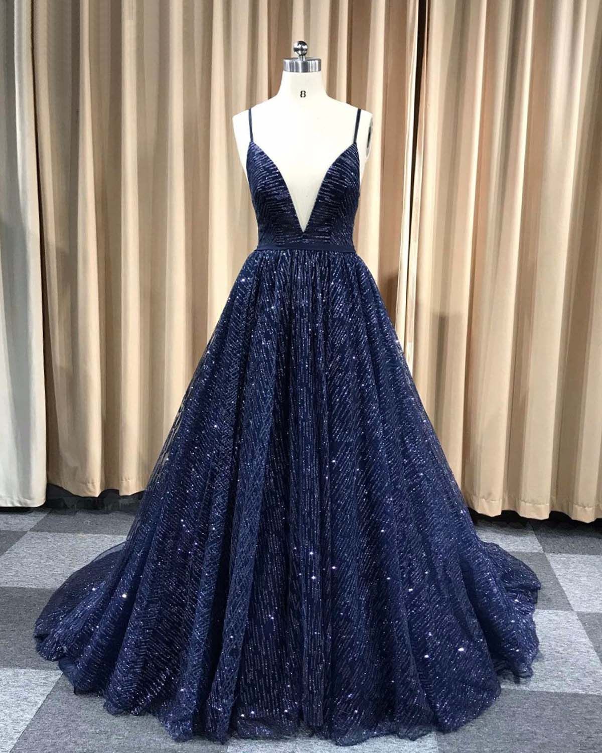 SSR437,blue sleeveless v-neck spaghetti-straps tulle long evening dress
