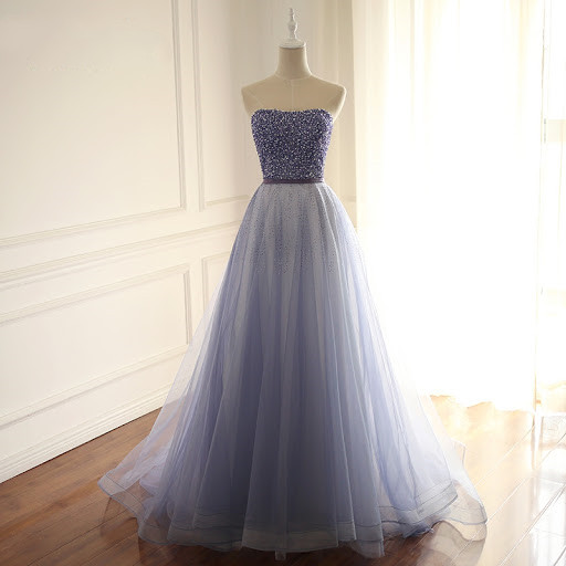 SSR468,purple sleeveless strapless a-line beading tulle long evening dresses