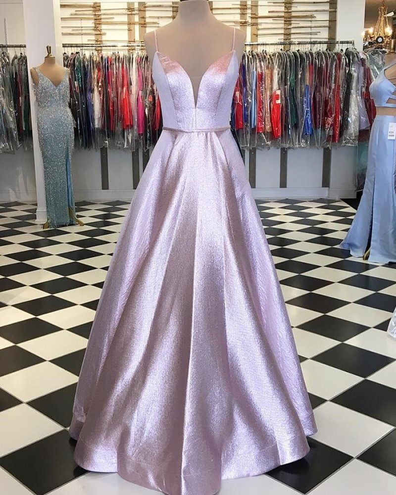SSR479,spaghetti-straps v-neck pink sleeveless satin long evening dresses