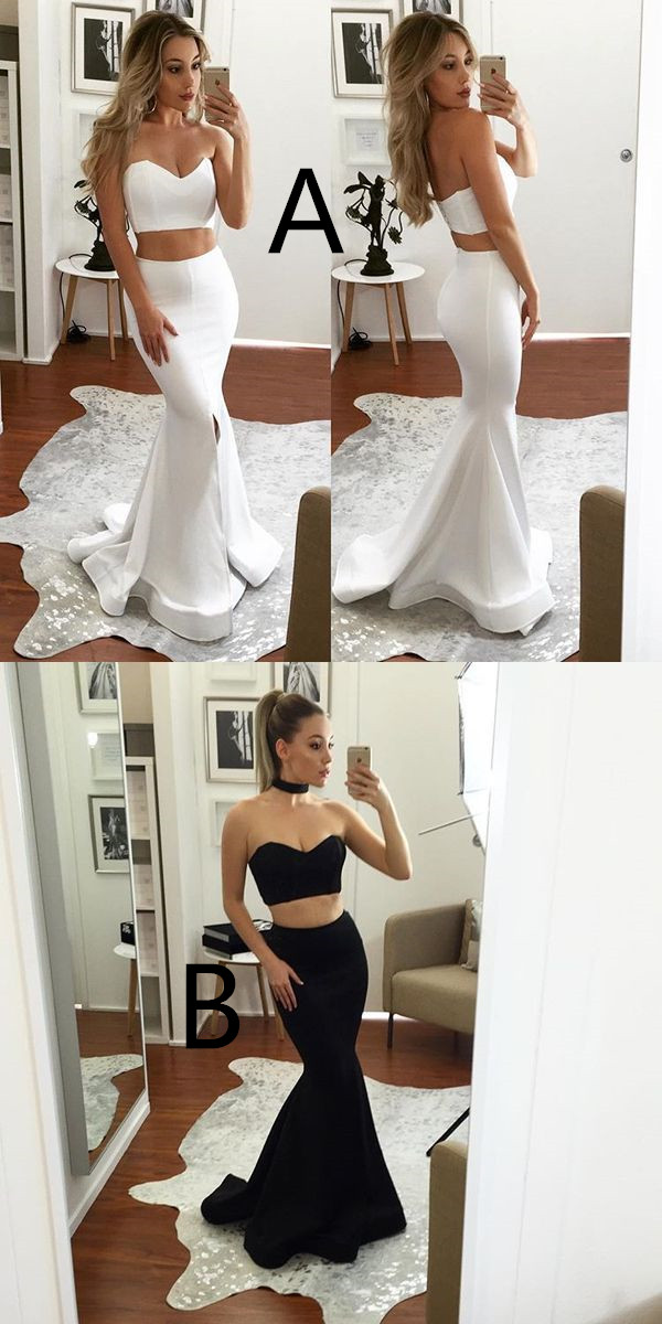 SSR484,two piece strapless sweetheart split satin long evening dress
