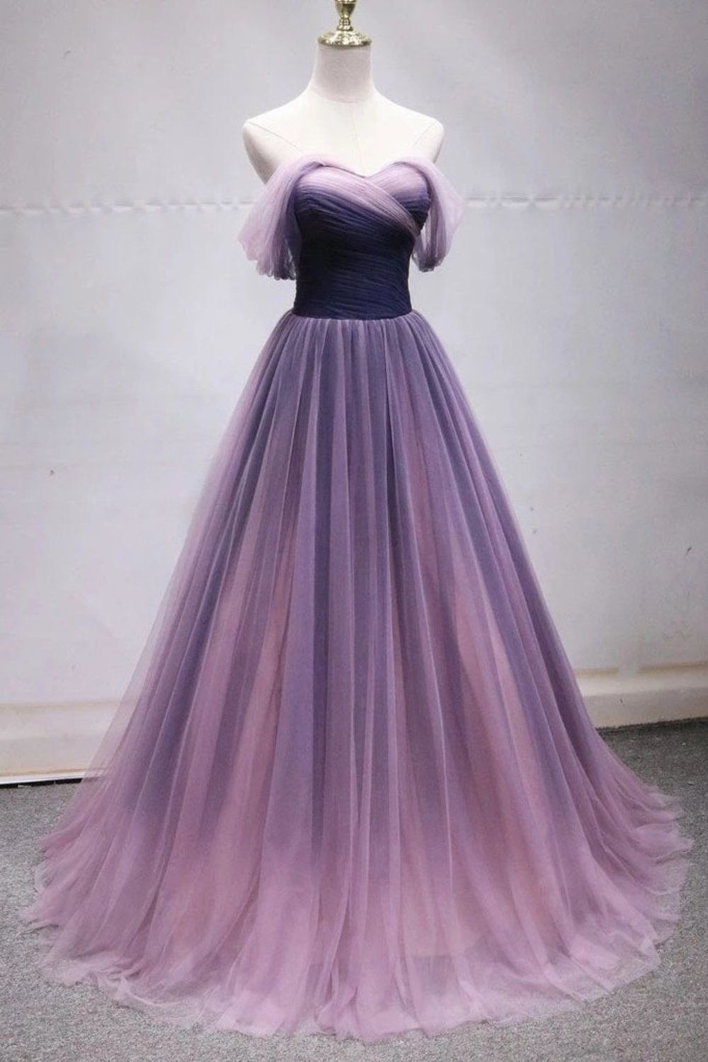 SSR500,off shoulder sweetheart strapless purple cap sleeves tulle full length evening dress
