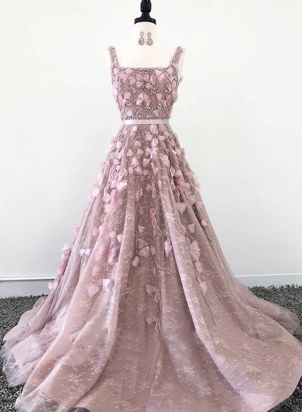 SSR512,Pink 3D Lace Beaded Long Custom Made Senior Prom Dress from Sweetheart Dress