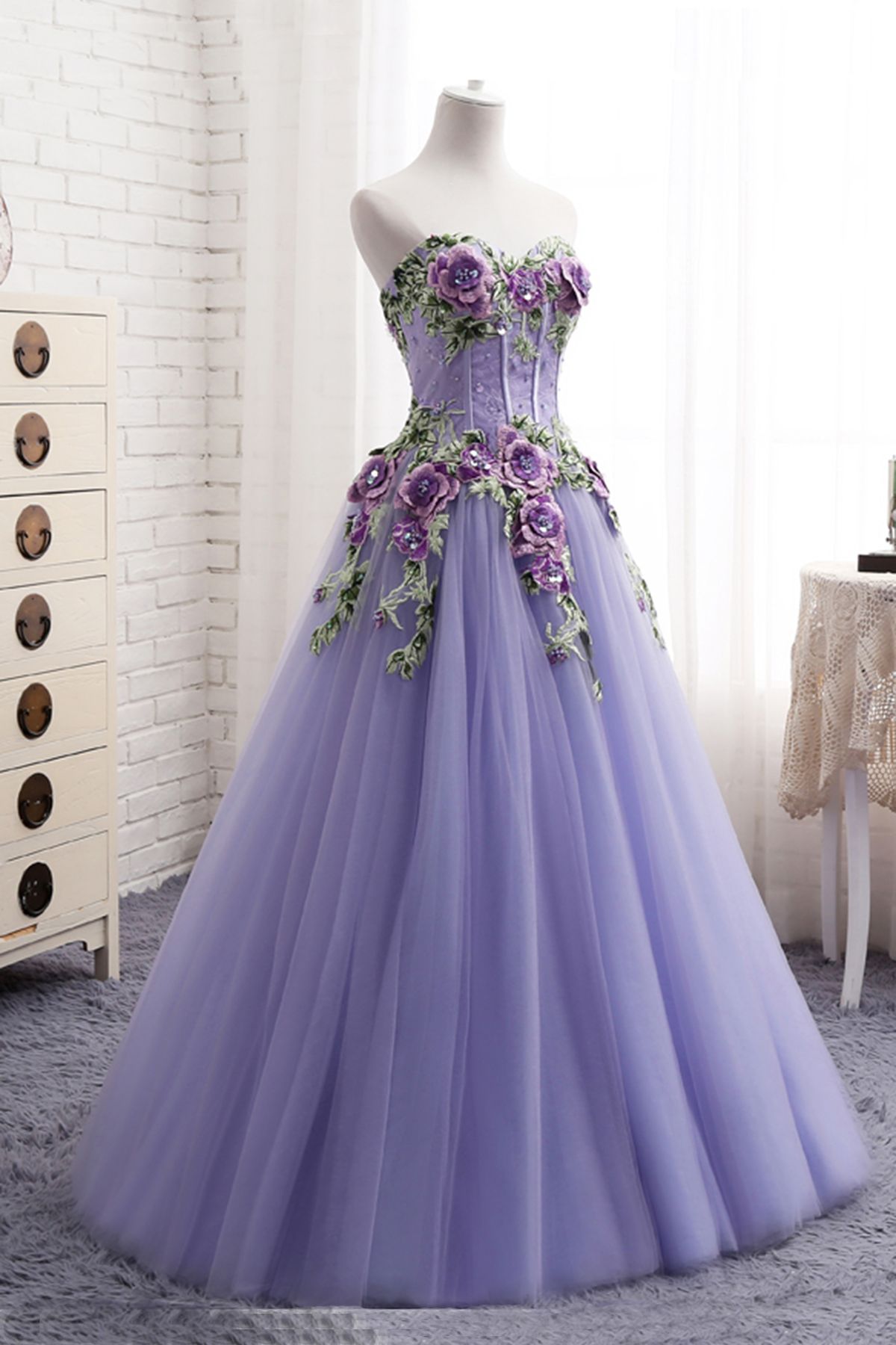 SSR559,purple sleeveless strapless sweetheart applique beaded flowers long evening dress