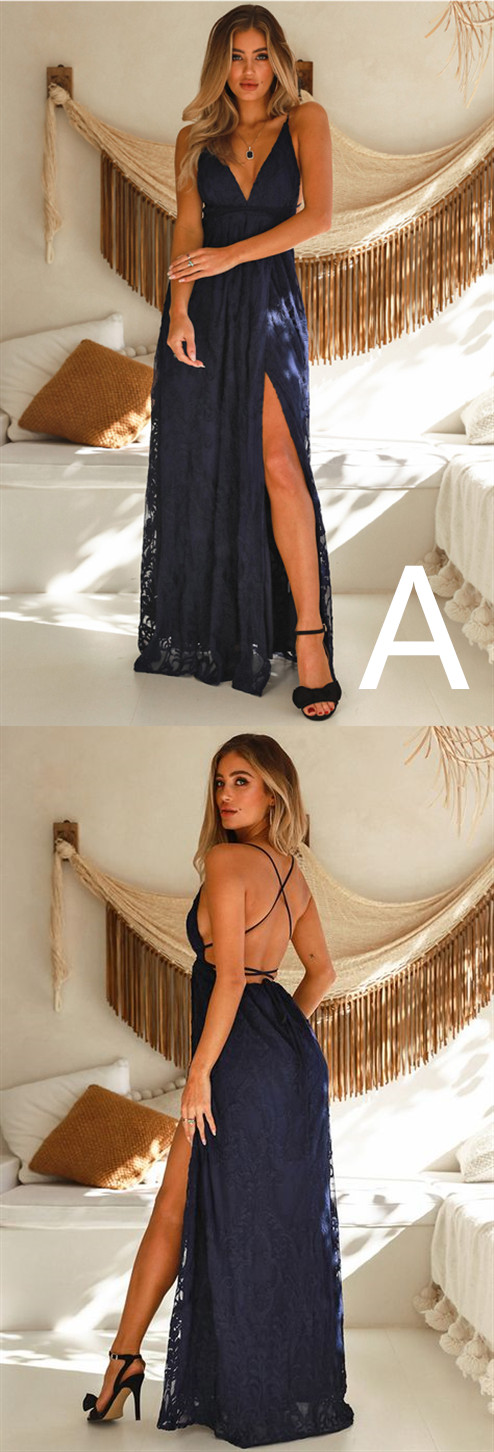 SSR570,sleeveless v-neck spaghetti straps backless applique split lace evening dress