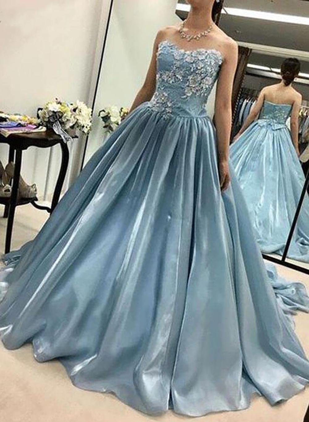 SSR632,Sweetheart ball gown applique prom dresses princess evening dress