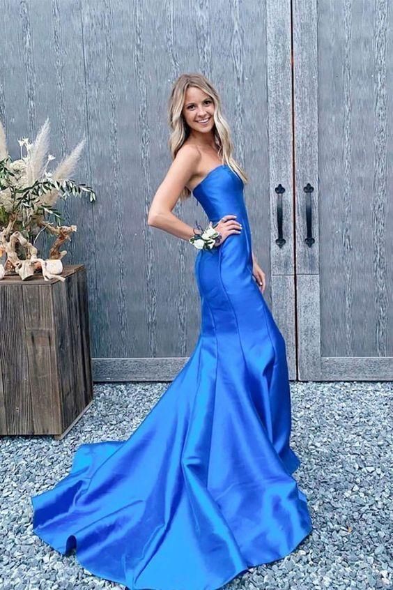SSR680,Blue Prom Dresses,Strapless Prom Dress,Mermaid Evening Dresses