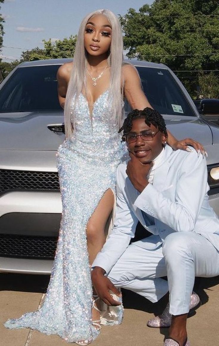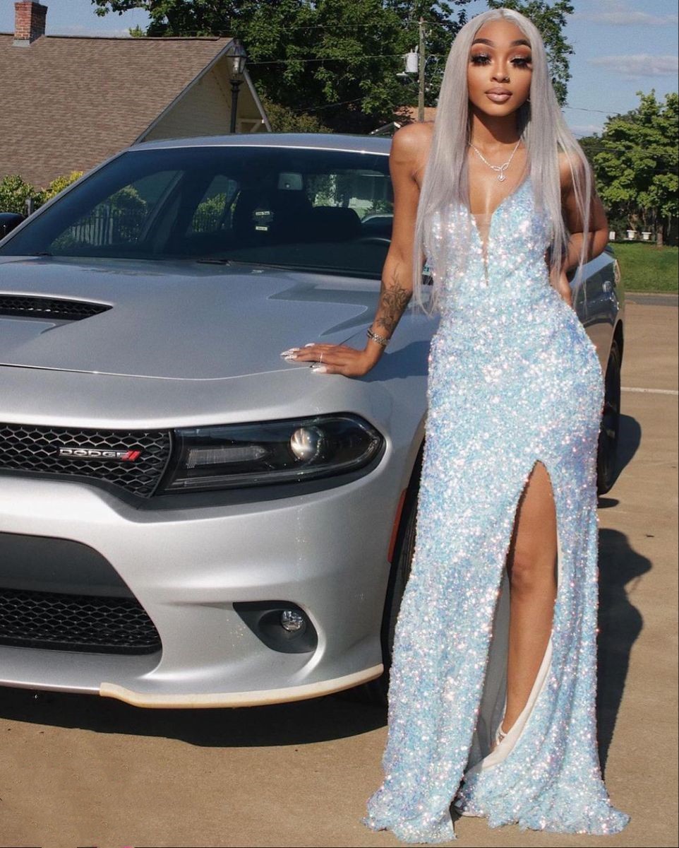 SSR691,Shiny Sequin Iridescent Prom Dresses Mermaid Long V Neck Evening Dresses