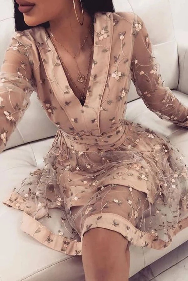 SSR031,champagne long sleeves v-neck applique flowers lace satin homecoming dress