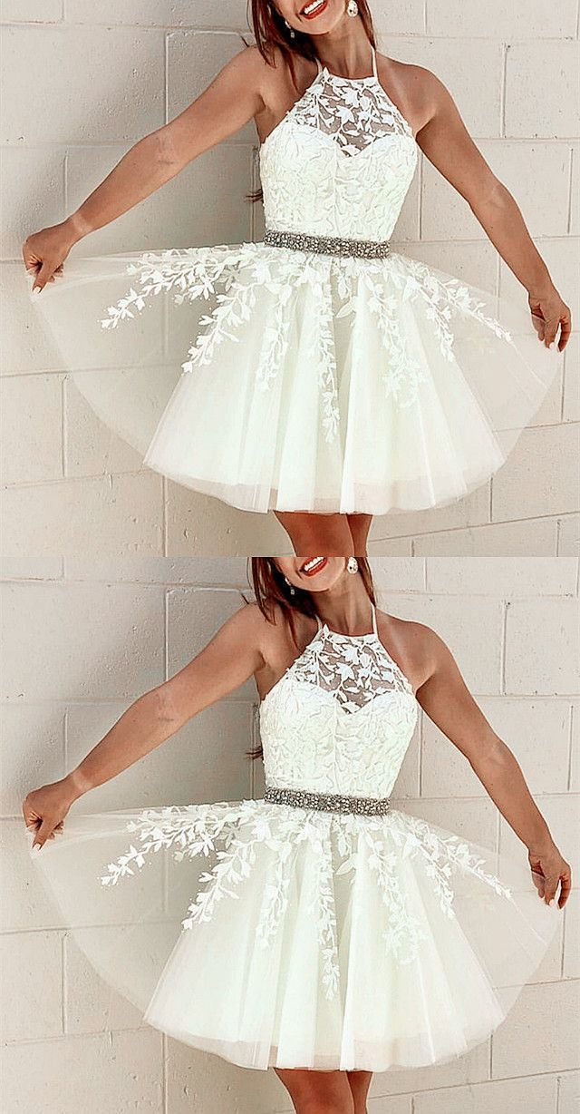 SSR035,white sleeveless halter applique beaded lace tulle evening dress