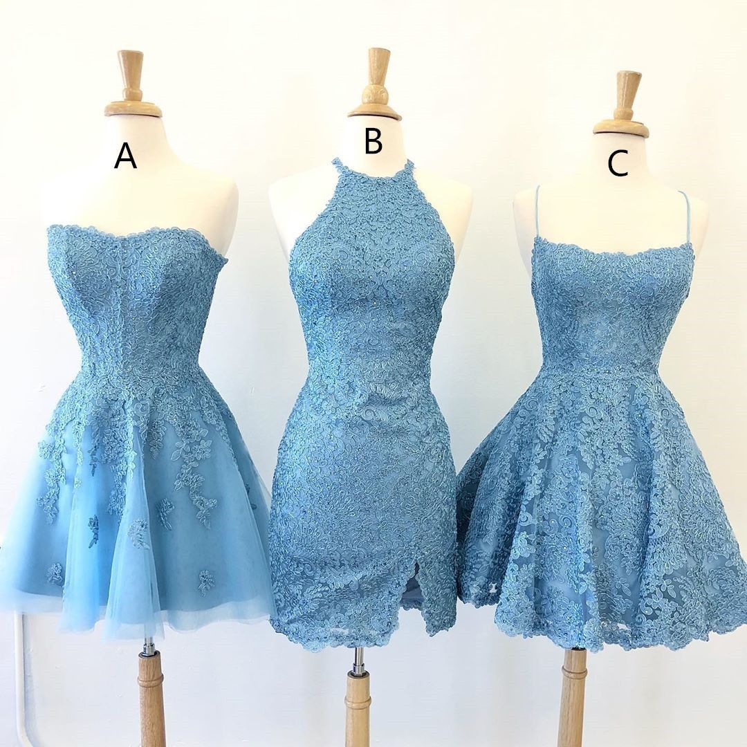 SSR049,blue sleeveless a-line applique lace homecoming dress