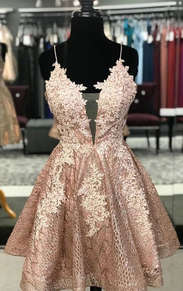 SSR057,straps short rose gold sequins homecoming dress with lace appliques and lace up back