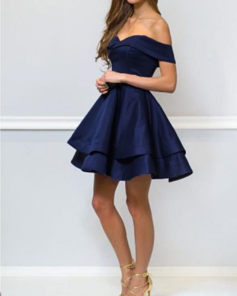 SSR070,blue off the shoulder strapless cap sleeves v-neck homecoming dress