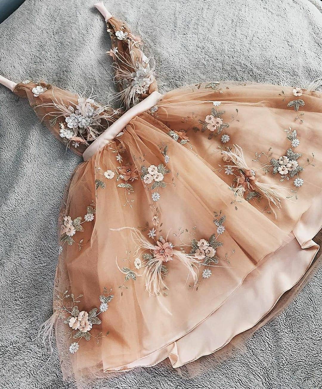 SSR092,champagne sleeveless v-neck applique backless flowers homecoming dress