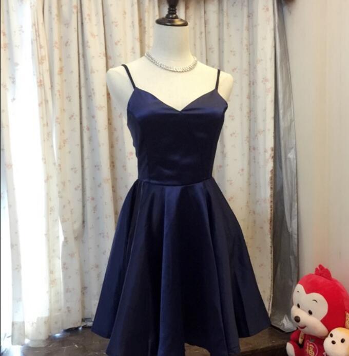 SSR153,blue sleeveless v-neck spaghetti-straps homecoming dress