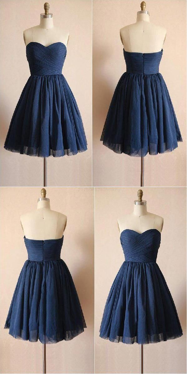 SSR159,blue sleeveless strapless sweetheart pleated homecoming dress