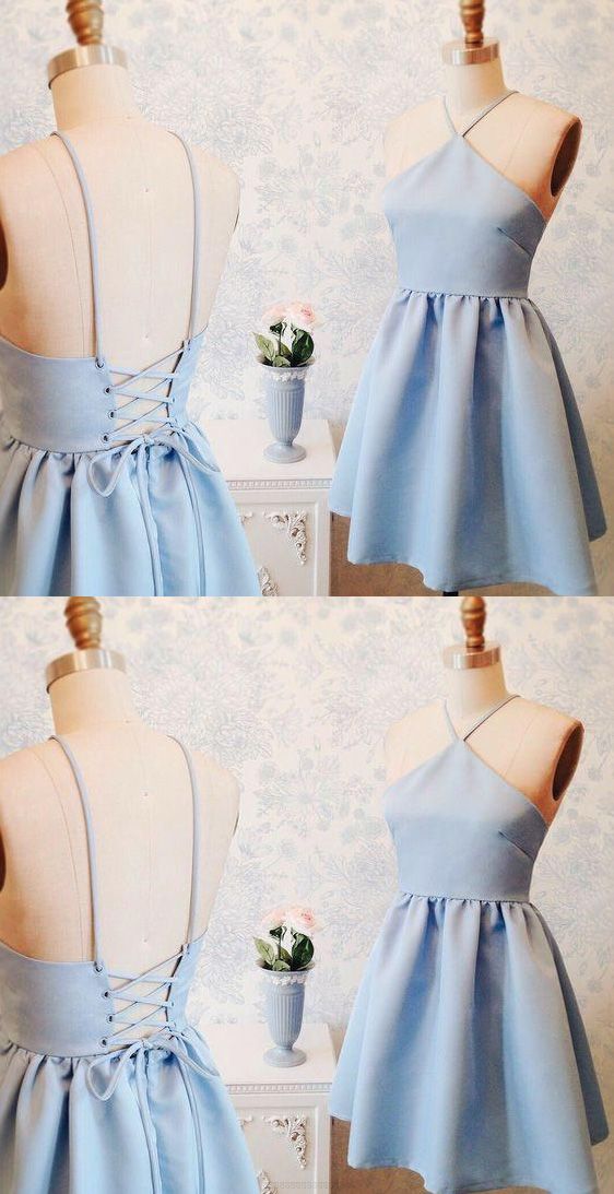 SSR162,Simple Spaghetti Straps Blue Sleeveless Homecoming Dress