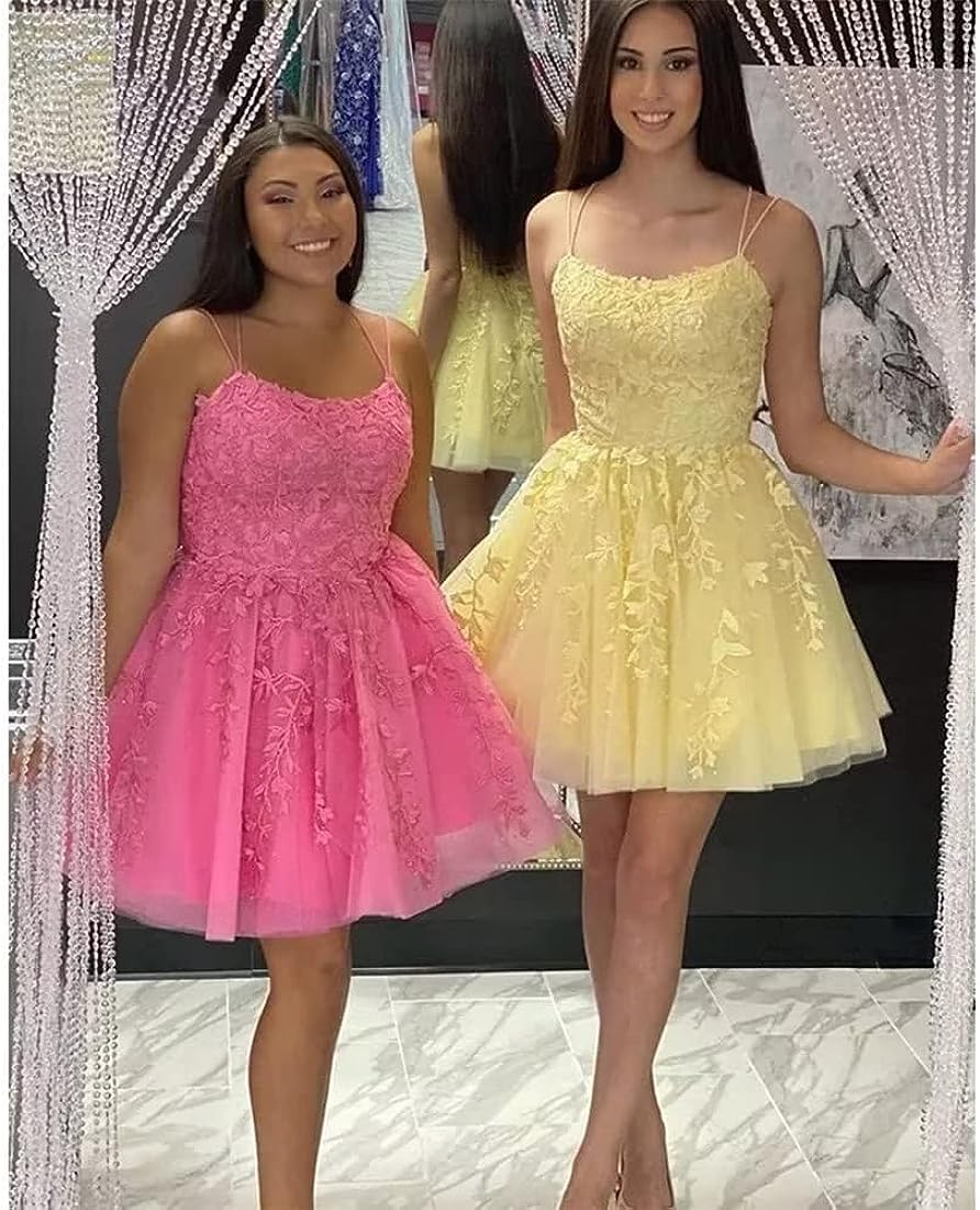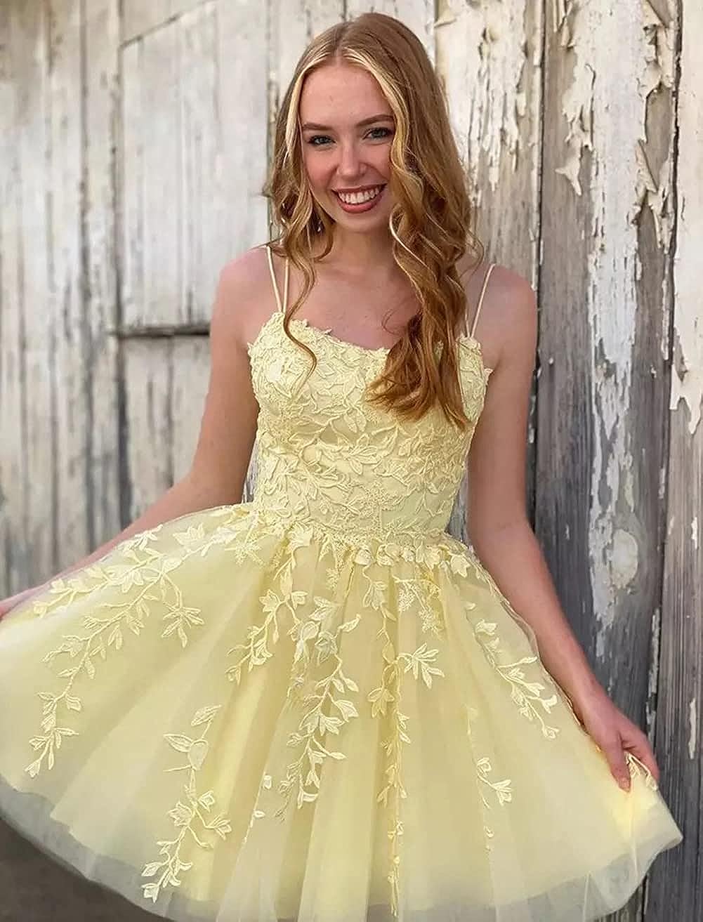 SSR702,Pastel Yellow Applique Tulle Homecoming Dress, A-Line Cute Prom Dress