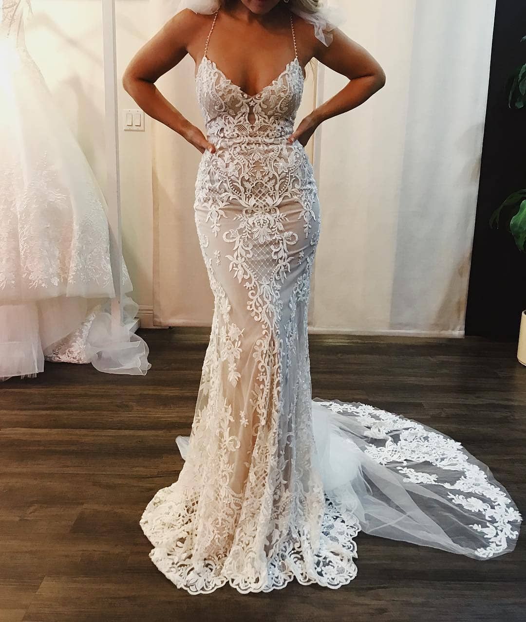 SSR250,light sleeveless v-neck spaghetti-straps beaded applique long train lace evening party dress
