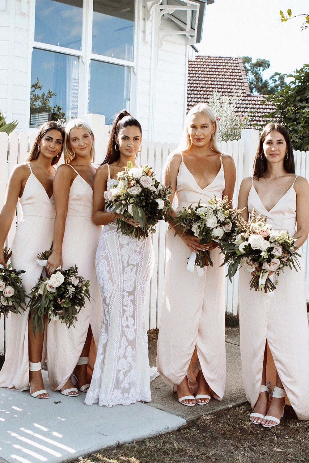 SSR261,simple blush sleeveless v-neck spaghetti-straps slit-skirt bridesmaid dress