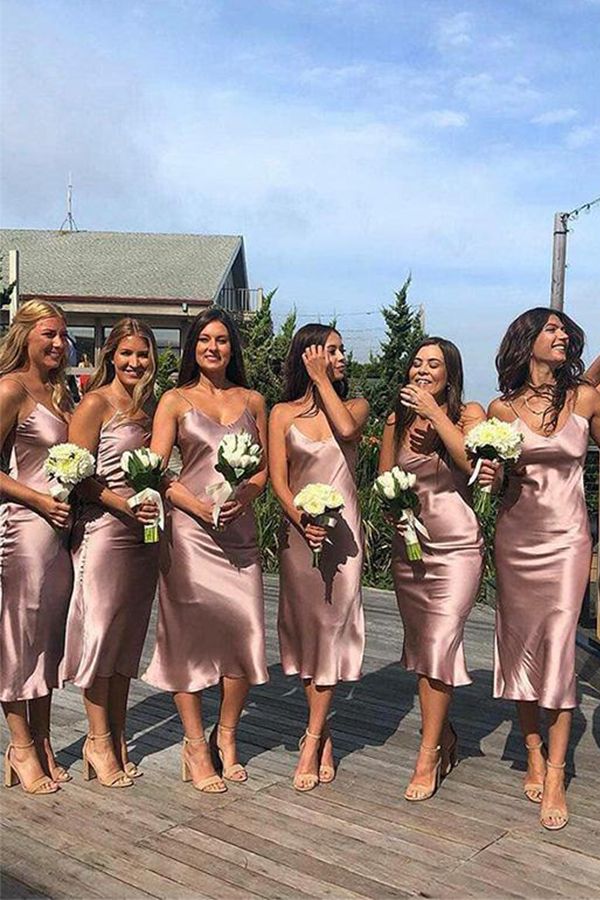 SSR267,simple sleeveless v-neck spaghetti-straps tea length bridesmaid dress