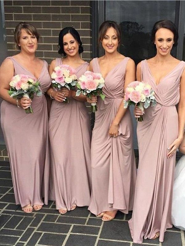 SSR276,Cheap Dusty Pink V Neck Simple A Line Sleeveless Long Bridesmaid Dress