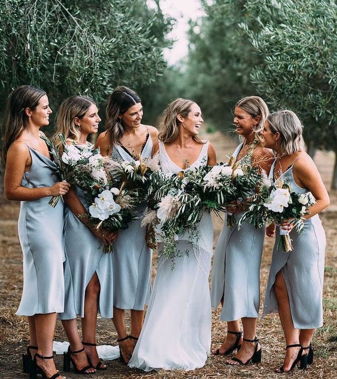 SSR277,blue sleeveless spaghetti-straps slit-skirt satin bridesmaid dress