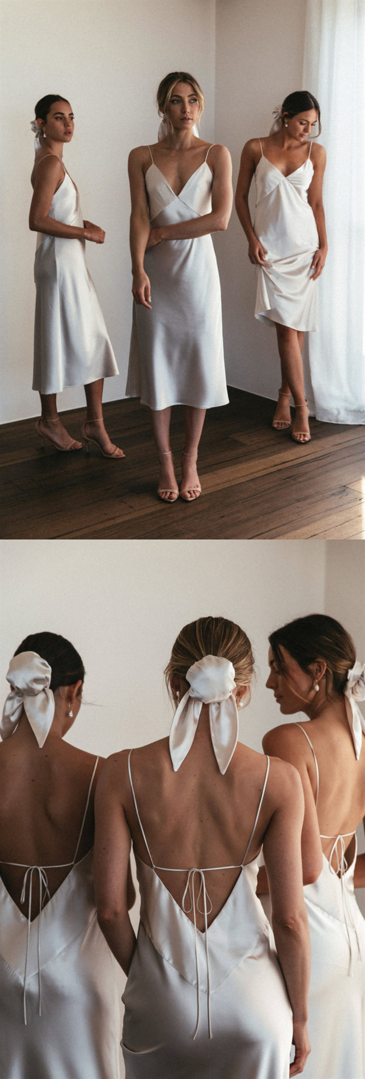 SSR284,simple sleeveless v-neck spaghetti-straps backless tea length bridesmaid dress
