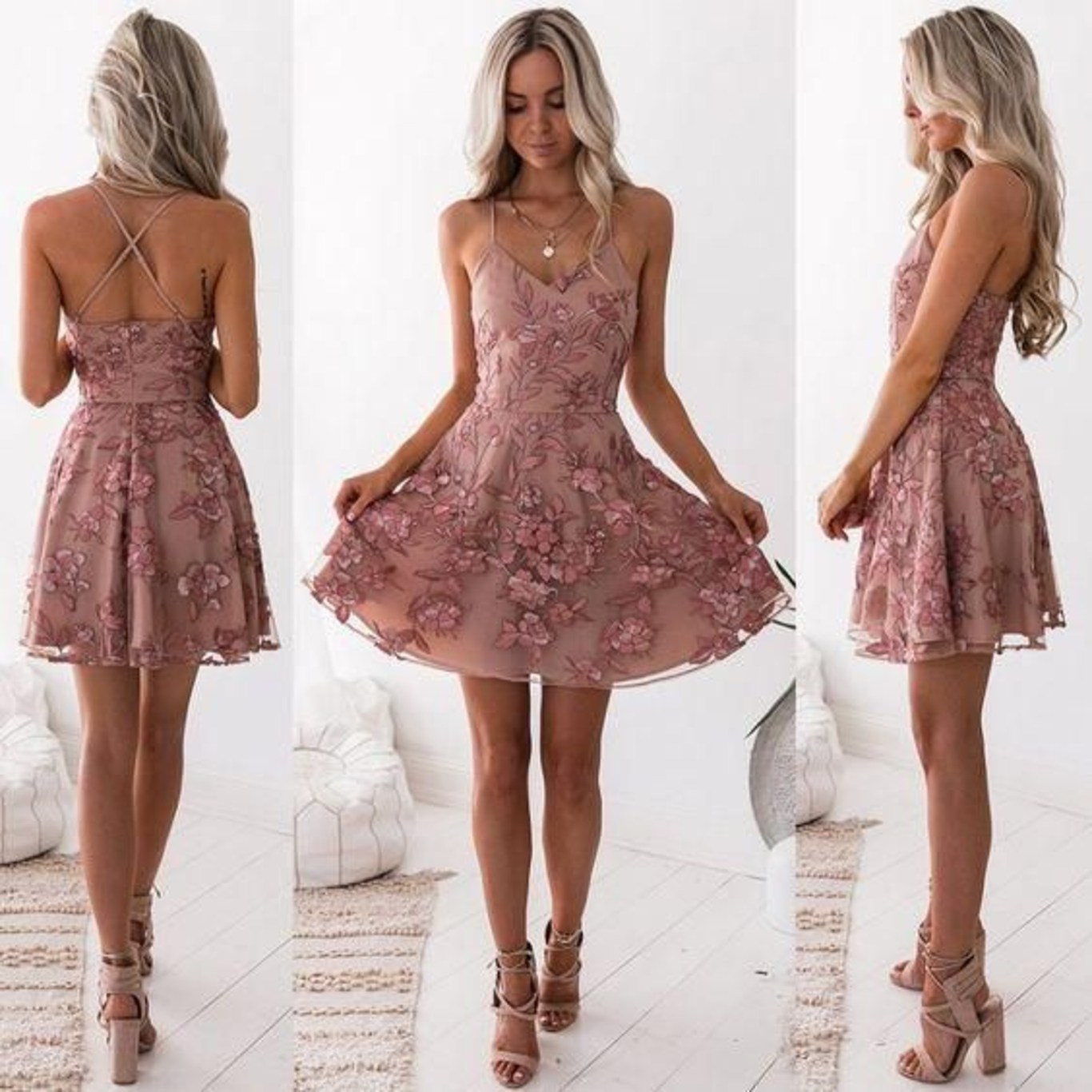SSR015,Spaghetti Straps Sleeveless Homecoming Dress, Backless Applique Homecoming Dress