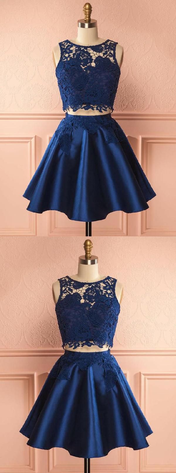 SSR089,blue two piece sleeveless jewel applique lace homecoming dress