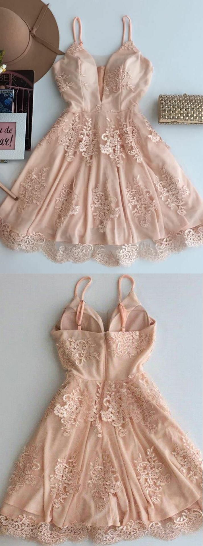 SSR095,Charming Spaghetti Straps Zipper Up Homecoming Dresses With Lace Appliques