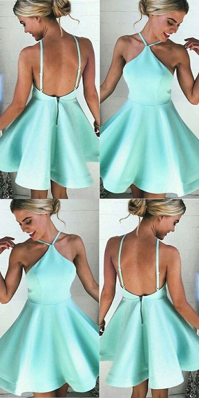 SSR161,green sleeveless halter backless spaghetti-straps homecoming dress