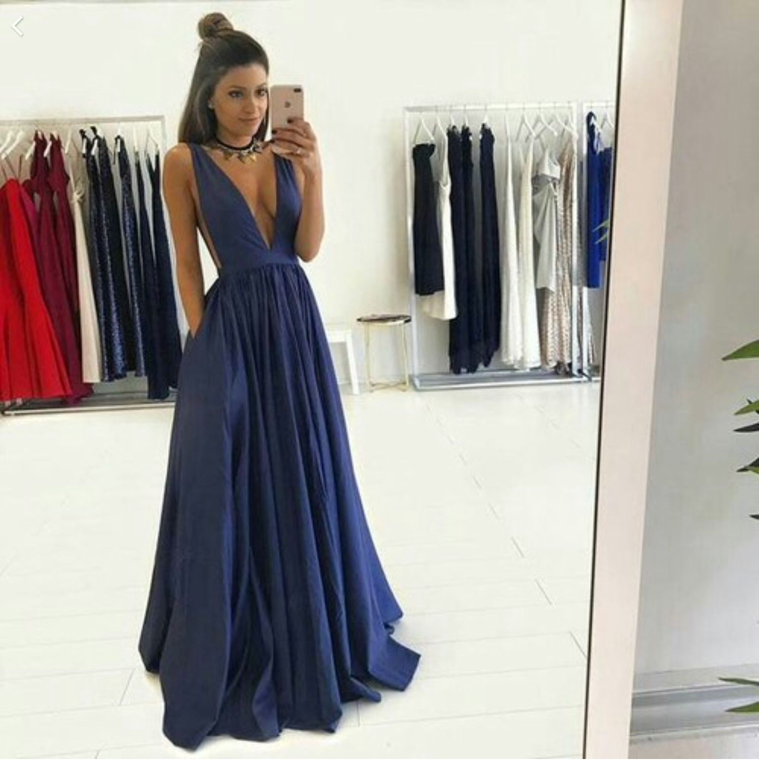 SSR423,light blue sleeveless v-neck pockets long evening dresses