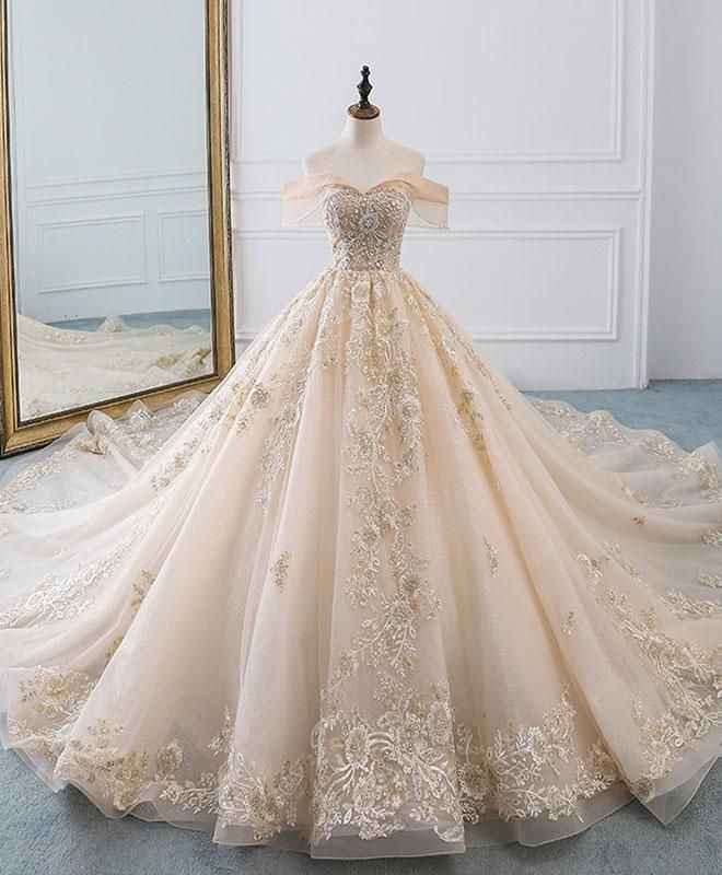 SSR443,blush champagne off shoulder v-neck cap sleeves applique tulle lace ball gown