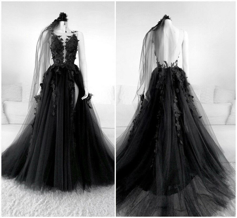 SSR459,black sleeveless jewel split applique tulle lace evening dress